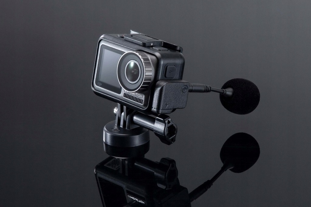 Adapter pozwala na podłączenie zewnętrznego mikrofonu do kamery sportowej Osmo Action przy jednoczesnym ładowaniu akumulatora.