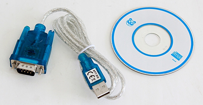Adapter składa się ze złącza USB, które podłącza się do portu USB w komputerze oraz wejścia RS232.