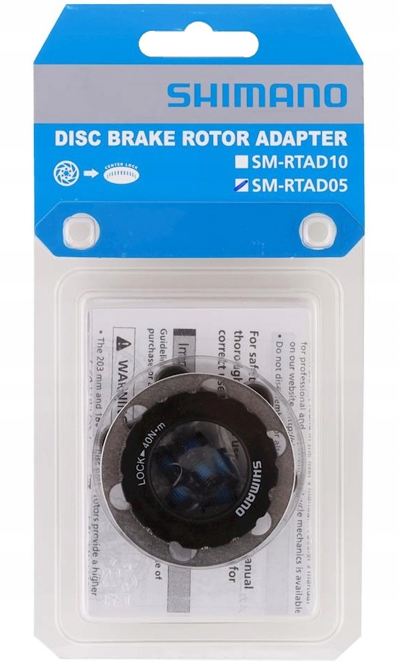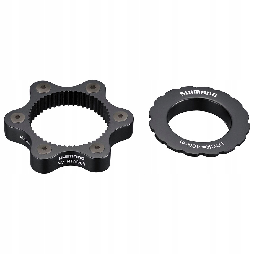 Adapter tarczy hamulcowej SM-RTAD05 firmy SHIMANO służy do zamontowania tarczy hamulcowej z mocowaniem na 6 śrub do piasty z systemem mocowania CENTER LOCK. Adapter ma niezawodną płytkę zapobiegającą luzowaniu, co gwarantuje bezpieczne działanie układu hamulcowego podczas jazdy we wszystkich warunkach.