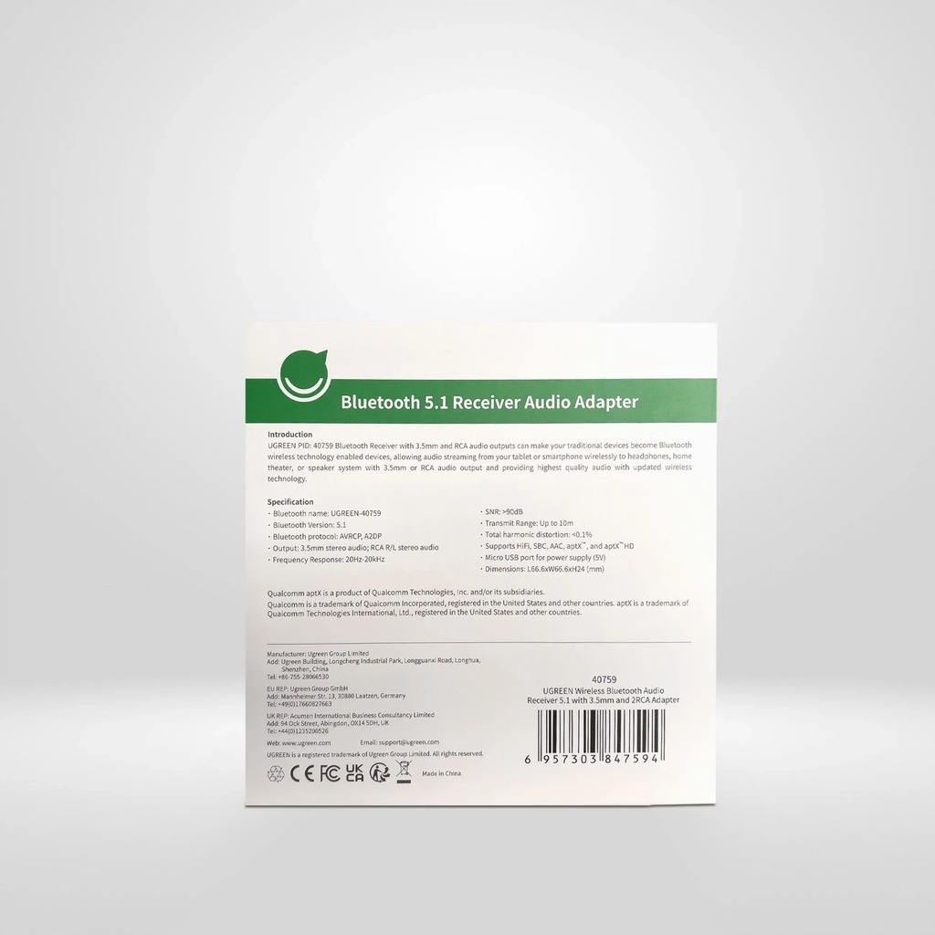 Ugreen adapter odbiornik Bluetooth 5.1 2 RCA / 3,5 mm mini jack