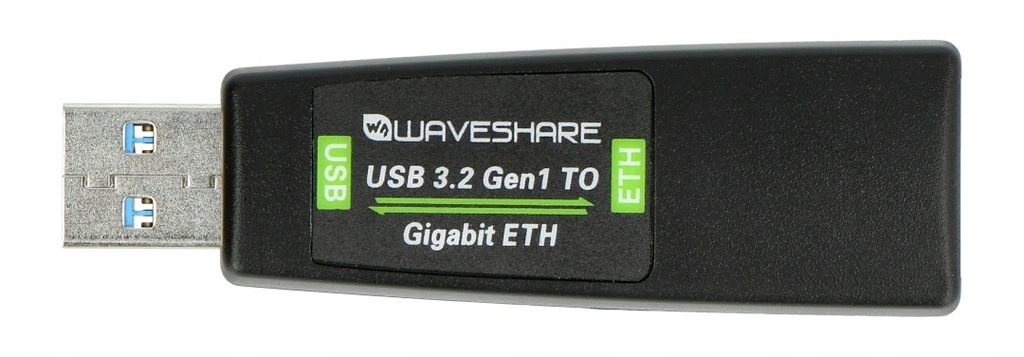 Adapter pozwalający uzyskać port Ethernet Gigabit z portu USB 3.2. Urządzenie stworzone przez Waveshare pozwala osiągnąć pełnoprawny port Ethernet o przepustowości 1 Gbps poprzez port USB 3.2. Adapter oparty został na wysoce wydajnym układzie Realtek RTL8153, który nie wymaga instalacji dodatkowych sterowników i jest plug and play. Idealnie sprawdzi się w urządzeniach, które nie zostały wyposażone w port Ethernet lub w takich, w których port został uszkodzony.