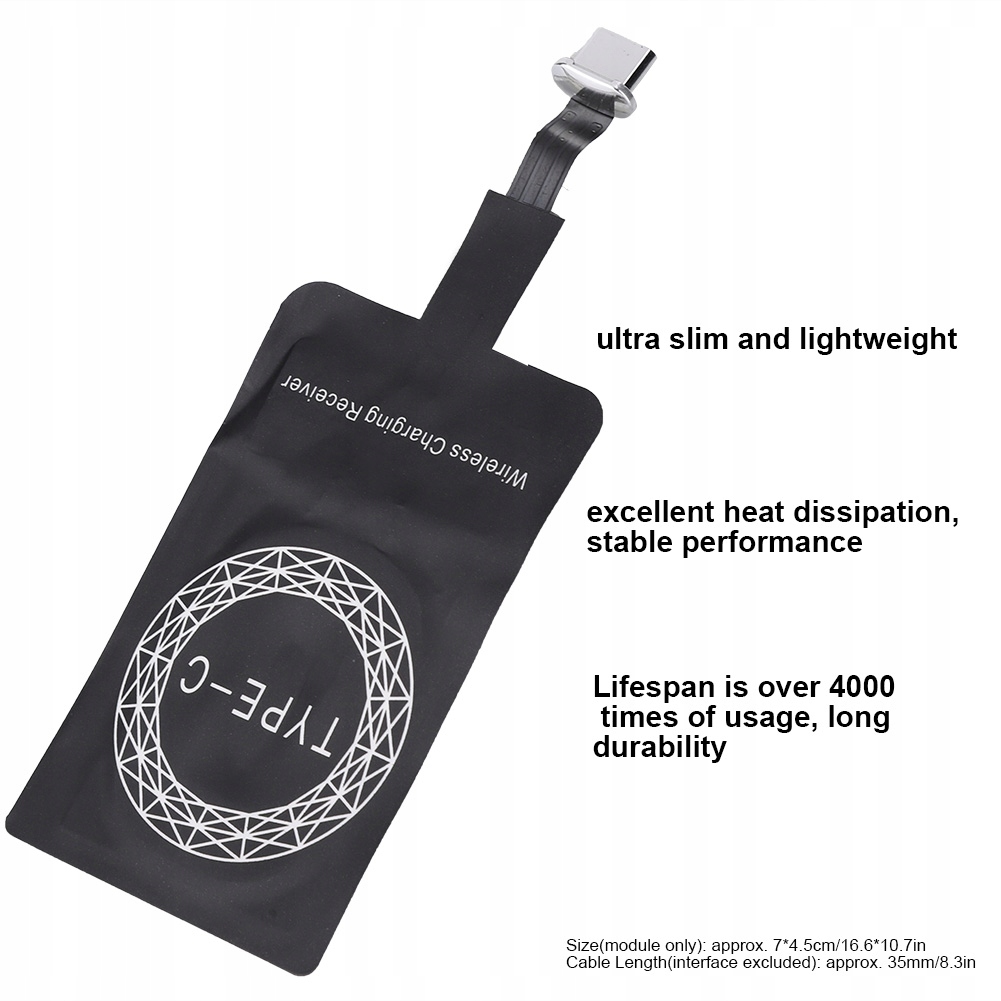 . ADAPTER USB-C DO ŁADOWANIA INDUKCYJNEGO BEZPRZEWODOWEGO TELEFONU QI 5V