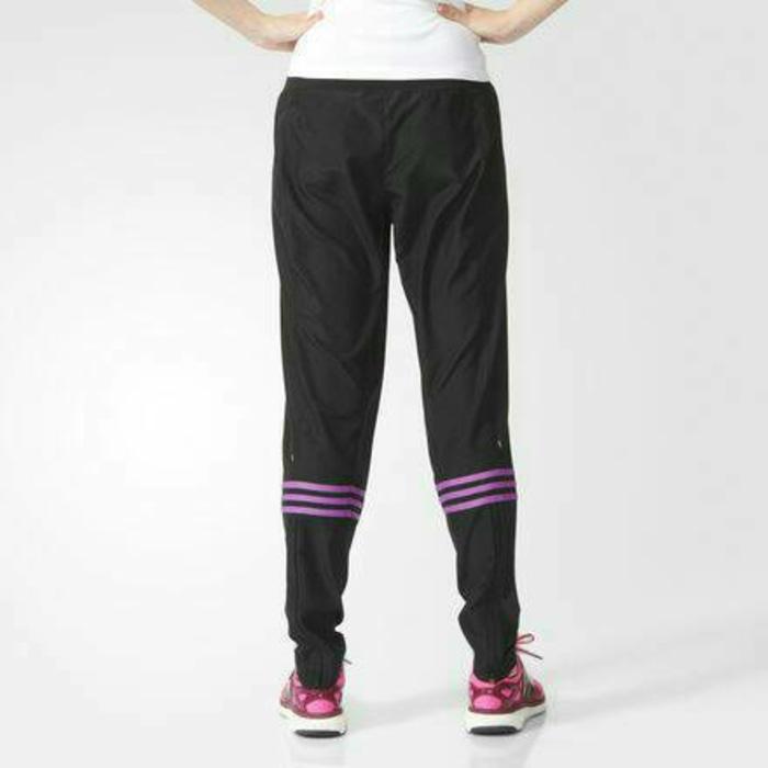 spodnie damskie, model AX6569, do biegania, treningowe, fitness, biegowe, kolor black/shock purple, z metki rozmiar 28 - wg tabeli rozmiar 2XS - w pasie na płasko 31 cm.