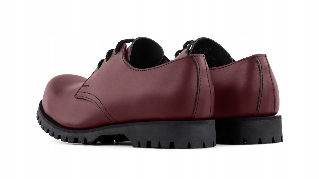Przód buta wzmocniony jest stalowym noskiem dla ochrony palców. Przyszwa bez ozdobnego szycia.