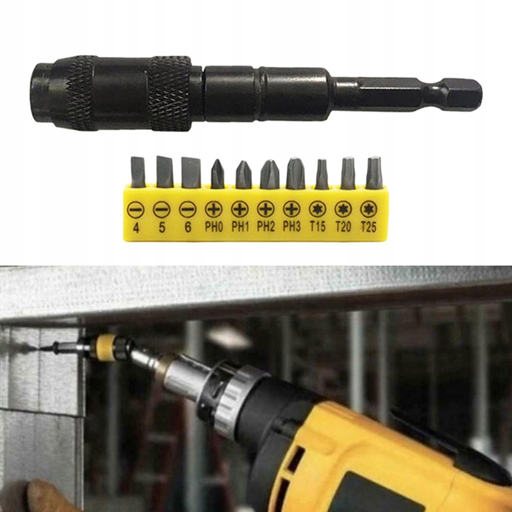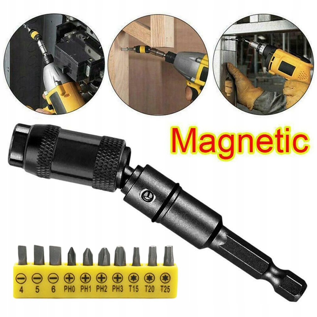 Impact Magnetic Pivoting Drill Bit Tip Holder Accessory Tough Bit Holder black with 10 bits