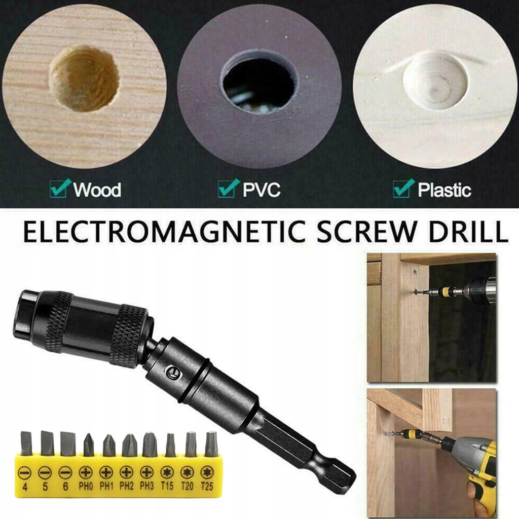 Black with 10 Bits: 1pc Universal Magnetic Pivoting Screw Drill Bit Holder, 10pcs bits.