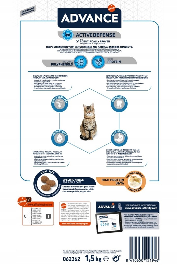 ADVANCE Adult Chicken & Rice - sucha karma z kurczakiem dla kotów 1,5kg [531211]