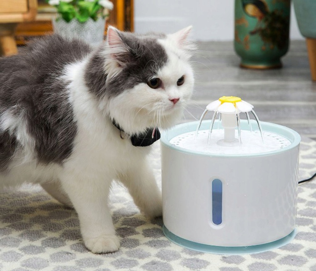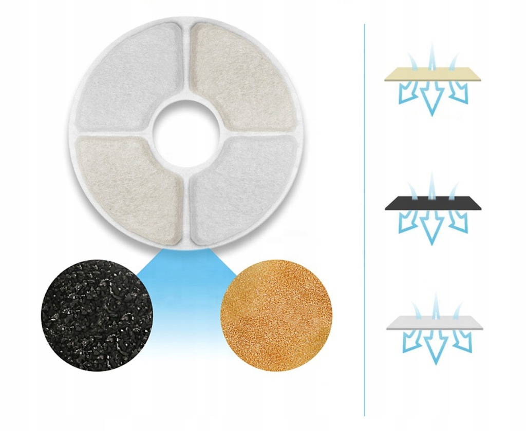 Automatyczne poidełko dla zwierząt domowych. Atrakcyjna konstrukcja w kształcie fontanny z kilkoma dyszami. Duży zbiornik na wodę o pojemności aż 2,4 litrów zapewnia długotrwałe użytkowanie. System filtrujący (z wymiennym filtrem) zapewnia świeżą i czystą wodę dla naszego pupila. Poidło wyposażone zostało w cichą i wydajną pompę, urządzenie może z powodzeniem pracować w nocy. Urządzenie posiada trzy zróżnicowane tryby pracy (przepływu wody). Bezpieczeństwo użytkowania zwiększają funkcje automatycznego wyłączania oraz sygnalizacji niskiego stanu wody (za pomocą podświetlenia LED). Cechy i specyfikacja produktu: Automatyczne poidełko dla zwierząt domowych Atrakcyjna konstrukcja w kształcie fontanny. Pojemny zbiornik na wodę. Cicha i wydajna pompa. Materiał: tworzywo sztuczne stal nierdzewna Zasilanie: USB 5V DC Długość kabla: 1,8 m Moc: 1,5W Pojemność zbiornika: 2,4 L System filtrujący wodę (możliwość wymiany filtra) Sygnalizacja niskiego stanu wody (podświetlenie LED) Funkcja automatycznego wyłączania (przy braku wody) Wysokość: 21,7 cm Średnica: 18,1 cm Kolor: biały