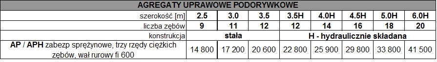 - przy szerokości powyżej 3 m maszyna składana hydraulicznie,