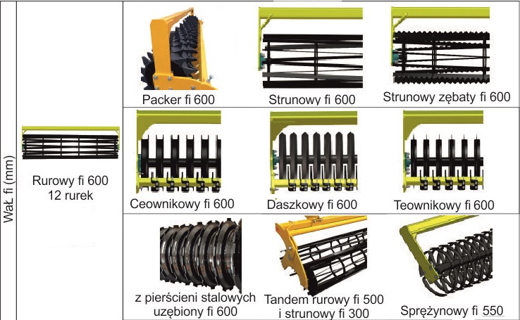 - wał tylni rurowy o śr. 600 mm,