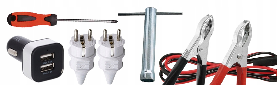 - ► Gniazdo i przewody do ładowania akumulatora 12 V 5.0 A