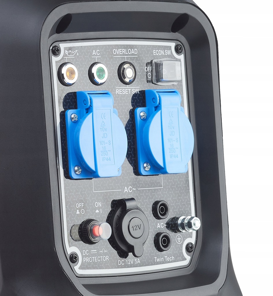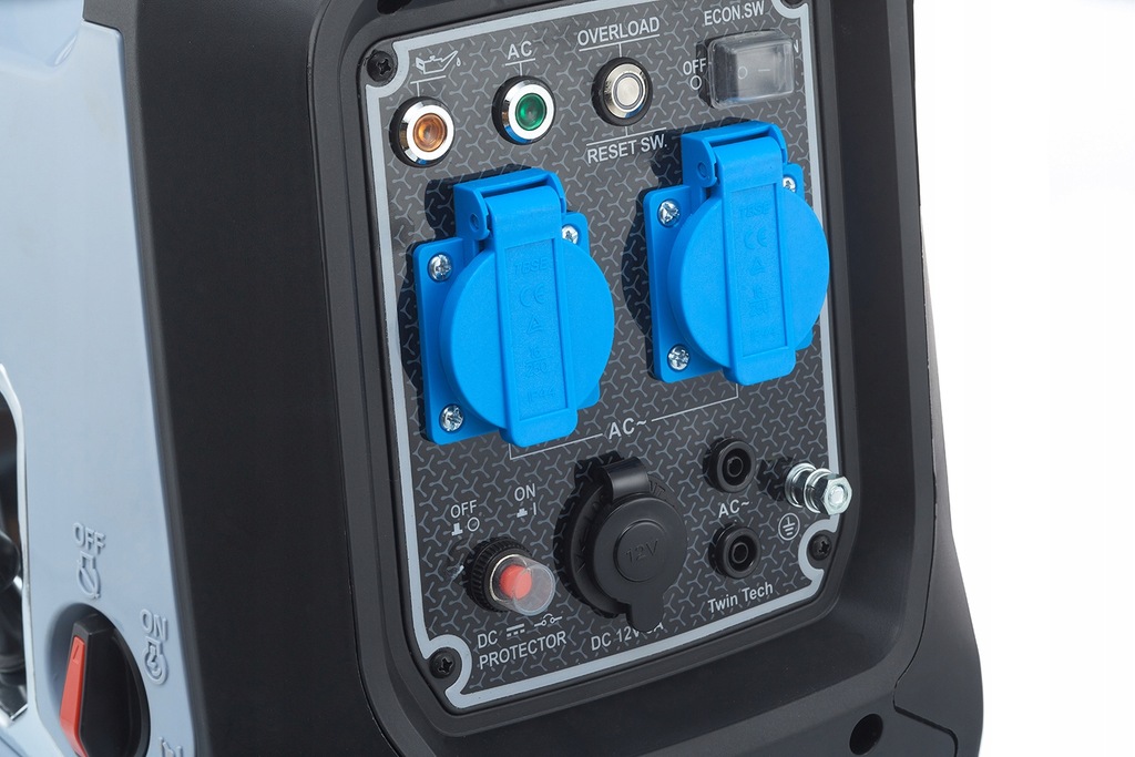 ⭐ Agregat posiada gniazdo 230V, gniazdo 12V DC (można wykorzystać do ładowania akumulatora) gniazdo USB.