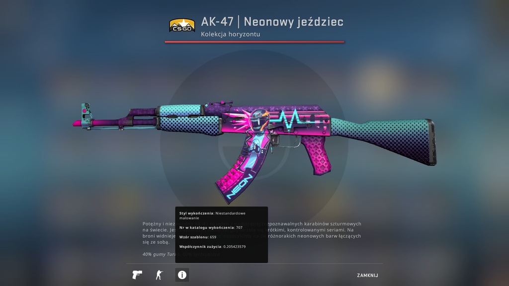 Sprzedam skina do AK-47 "Neonowy jeździec" w stanie "Po testach bojowych".
