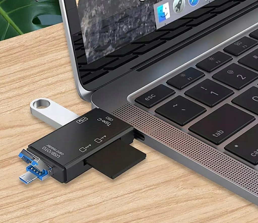 Uniwersalny czytnik kart pamięci podłączany do komputera za pomocą wbudowanego portu USB. Czytnik umożliwia podłączenie do portu USB typu micro-USB albo USB-C bez wykorzystywania dodatkowych adapterów! Umożliwia odczyt kart z prędkością odpowiednią dla USB 3.0 oraz o pojemności aż do 128 GB. Dzięki dużej ilości wtyków możesz go podłączyć do w zasadzie dowolnego urządzenia elektronicznego (komputera, telefonu, tabletu). Posiada pełną kompatybilność z funkcją OTG.