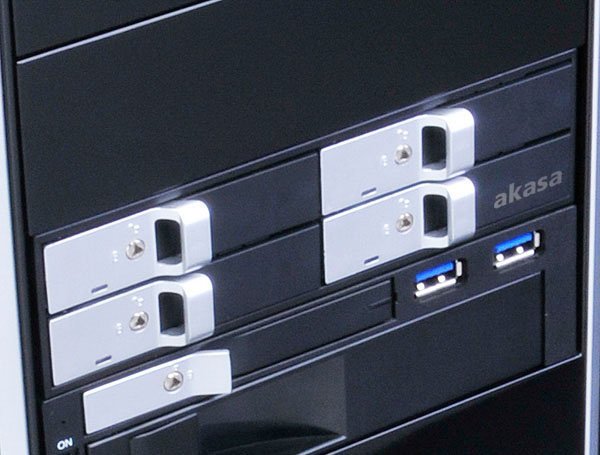 4 bay 2.5" mobile rack allows four 2.5" SSD/HDD to fit into a 5.25" PC drive bay. Intelligent design for tool-free HDD access.