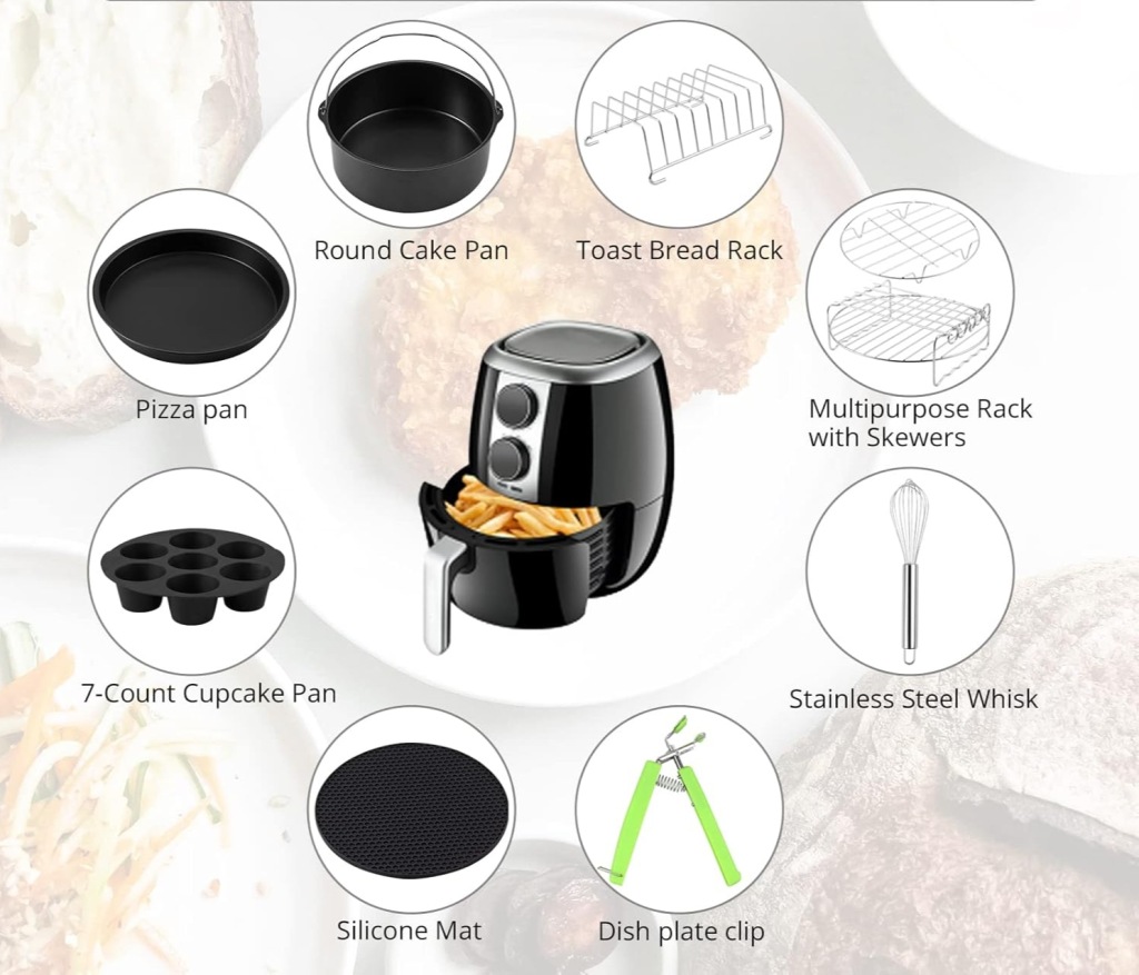 HOMGEN Popularne zestawy 17, 23-centymetrowych akcesoriów do frytkownicy na gorące powietrze –HOMGEN ogólny zestaw 23-centymetrowych akcesoriów do frytkownicy na gorące powietrze zawiera: