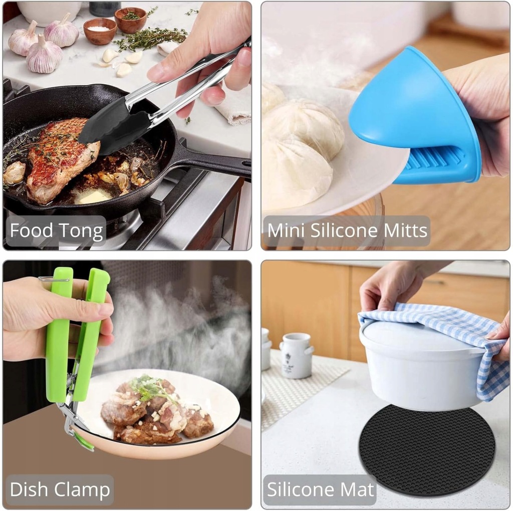 - Wysokiej jakości materiał: Nasz 17-elementowy zestaw akcesoriów do frytkownicy HOMGEN jest w 100% bezpieczniejszy i wysokiej jakości. Stojak ze stali nierdzewnej jest trwały, a silikon klasy spożywczej jest bezpieczny w użyciu, ciesz się zdrowym czasem gotowania.