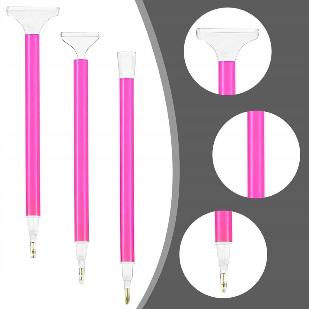 Długopisy do haftu - zestaw zawiera 4 różne pióra ułatwiające układanie diamencików. Dzięki różnym końcówkom w łatwy sposób można chwycik kilka diamencików naraz, co usprawnia pracę.