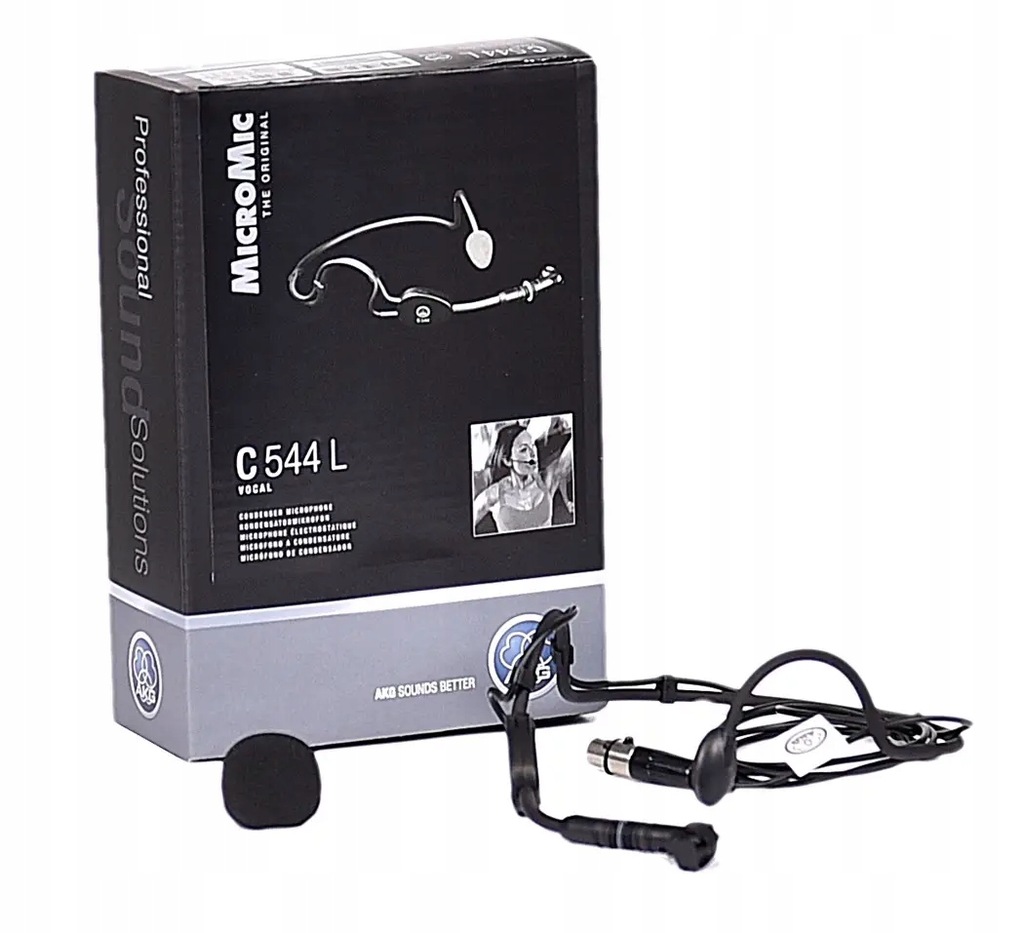 Model AKG C 544 L to miniaturowy mikrofon pojemnościowy wyposażony w zagłowny pałąk. Charakterystyka kardioidalna zapewnia dobrą detekcję dźwięku docierającego do mikrofonu od strony ust użytkownika. Przeciwwstrząsowa konstrukcja obudowy przetwornika pojemnościowego zapobiega powstawaniu szumów mechanicznych oraz dźwięków tarcia. Wysięgnik pozycjonuje mikrofon na wprost kącika ust co zapobiega transmisji dźwięku wydychanego powietrza oraz chroni przed zanieczyszczeniem. Dostarczona osłona przeciwwietrzna dodatkowo zmniejsza podatność na dźwięk wiatru oraz wydech.