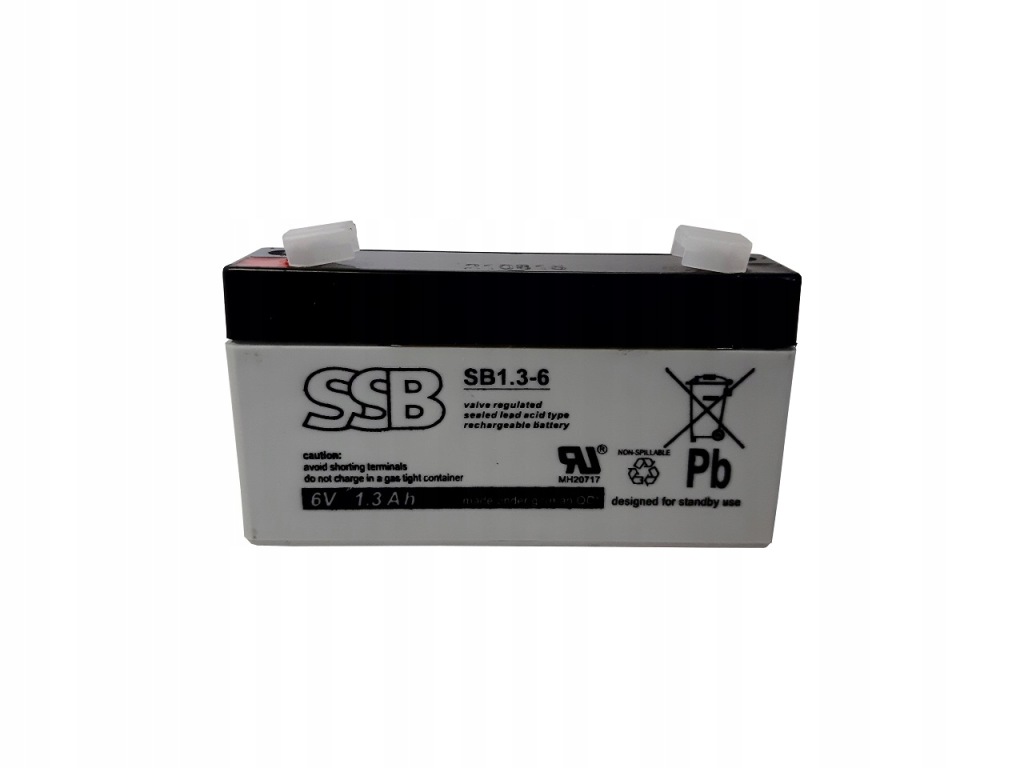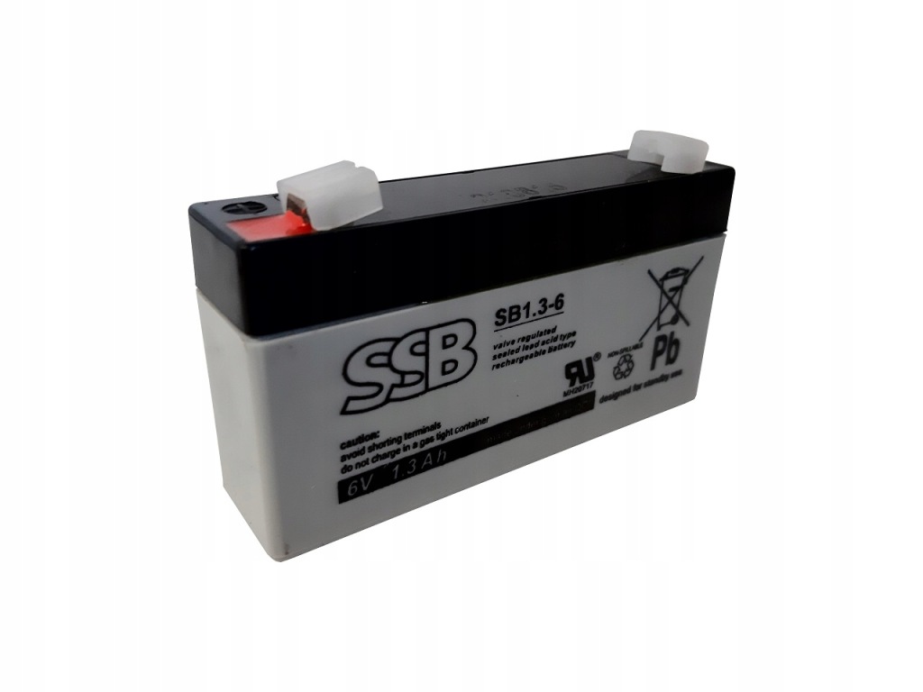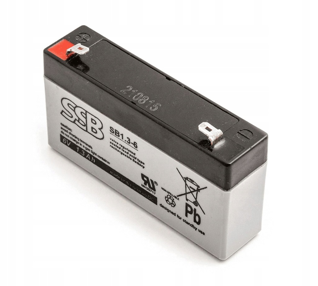 Akumulator SSB Battery 6V 1,3Ah SB1,3-6 o wymiarach: 98 mm długości, 24 mm szerokości, 58 mm wysokości, to wysokiej klasy akumulator AGM przeznaczony do kas i drukarek fiskalnych, systemów UPS, oświetlenia awaryjnego, alarmowych i przeciwpożarowych, urządzeń telekomunikacyjnych, medycznych, pomiarowych, mobilnych, automatyki i podobnych zastosowań