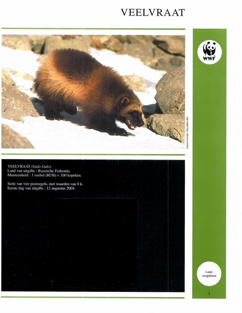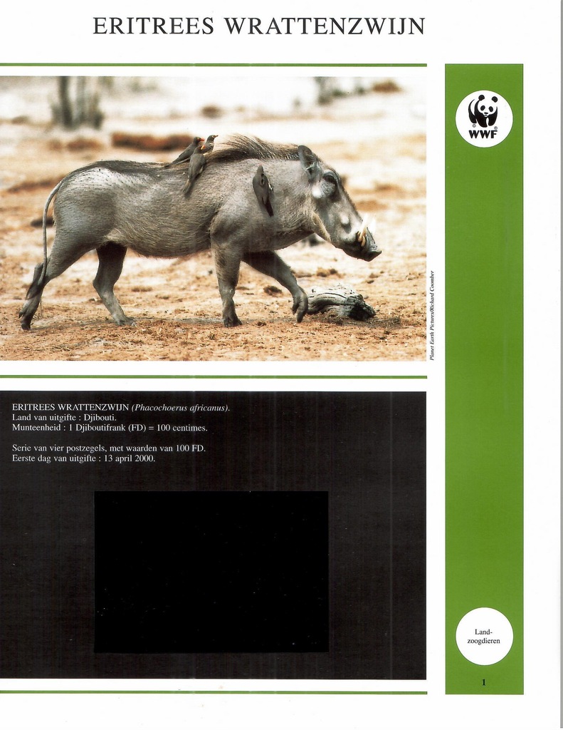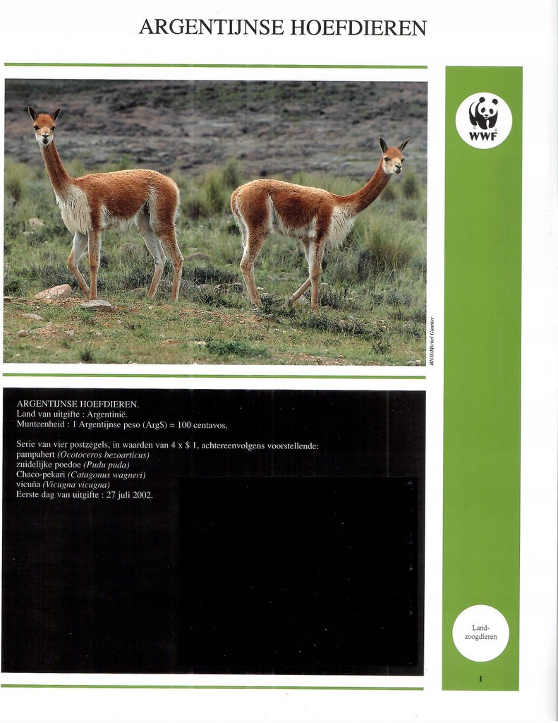 Posiada 55 kart ( zdj. opisy, kieszenie na walory ) Mongolia 2000 r. koń, Argentyna, 2002 r. ssaki, Fidżi 2010 r. gady, Togo, 2010 r. pancernik, Australia, 2011 r. ssaki, Wietnam, 2000 e. ssaki, Rosja, 2004 r. ssaki, Solomon Islands, 2002 r. ssaki, Guine Bissau, 2002 r ssaki, Niger, 1998 r. ssaki, Djibouti, 2000 r. ssaki