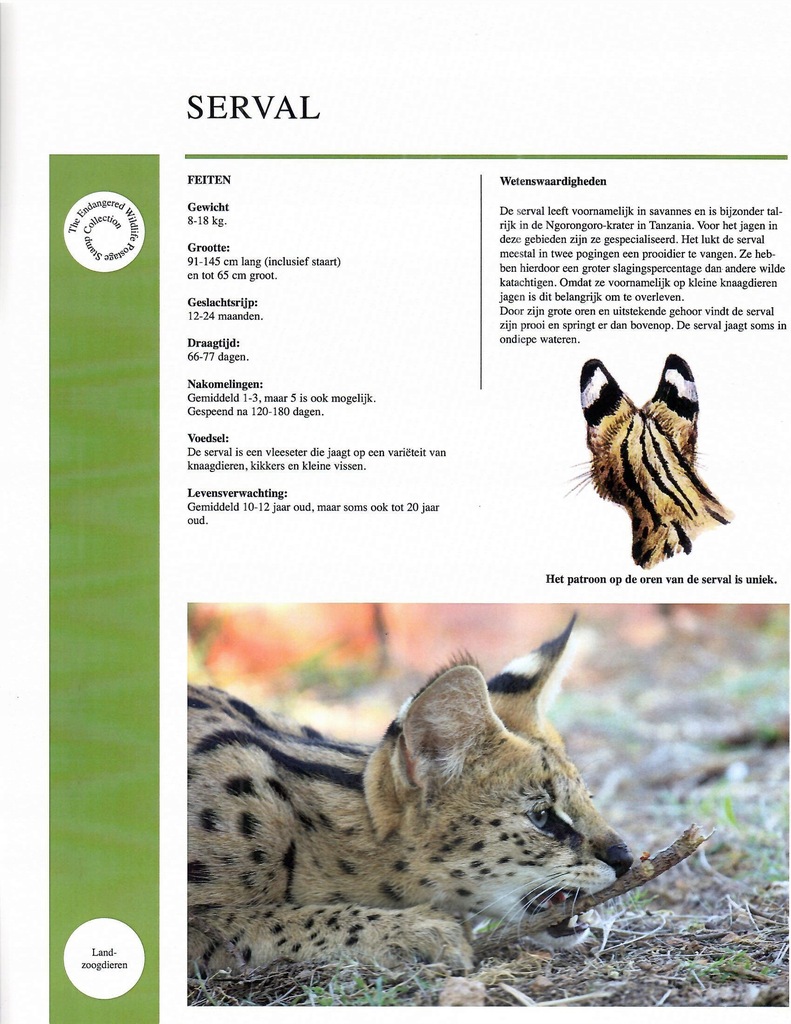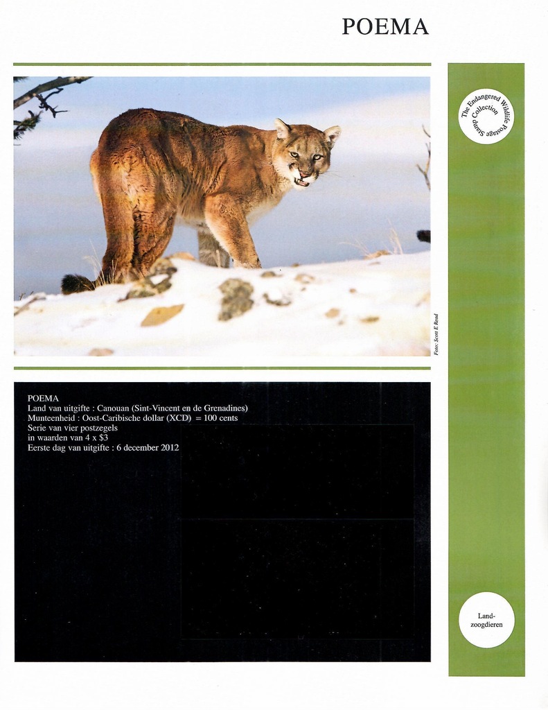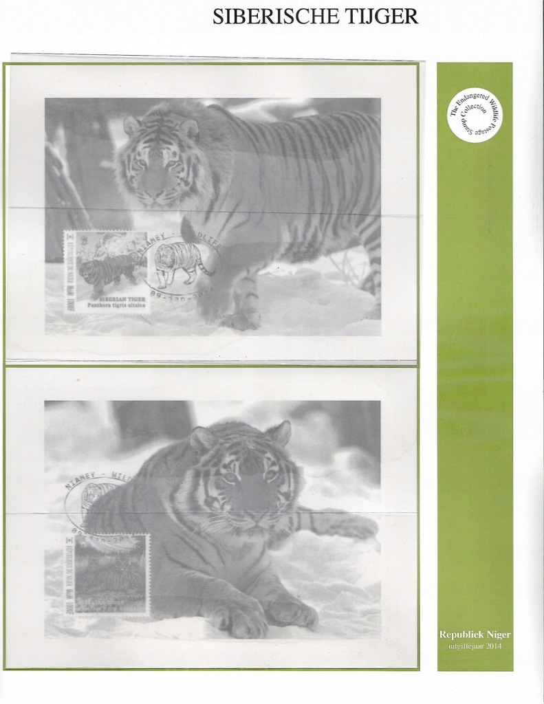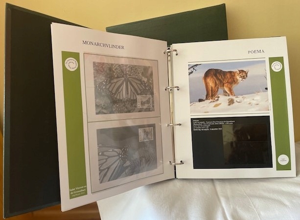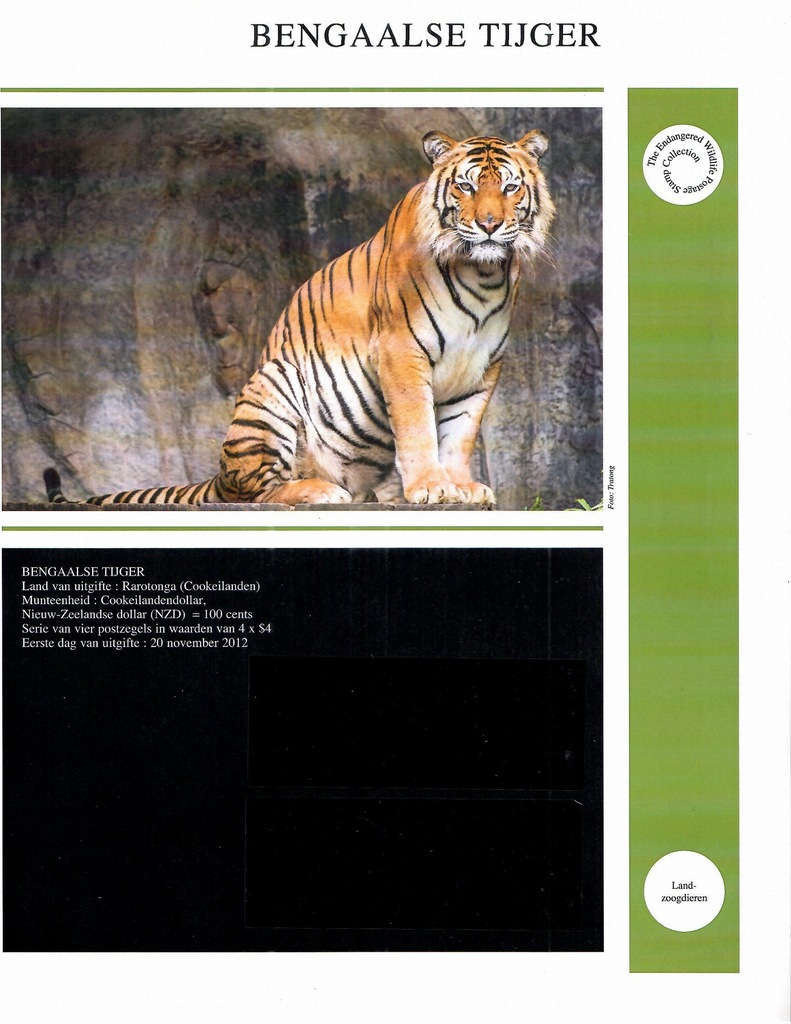 Posiada 24 kart ( zdj. opisy, kieszenie na walory ) Guinea, 2012 r. hiena, St. Vincent, 2012 r. motyle, Grenadines of St. Vincent, 2012 r. puma, Cook Islands, 2012 r. tygrys, Niger, 2014 r. tygrys, Burundi, 2012 r. serwal,