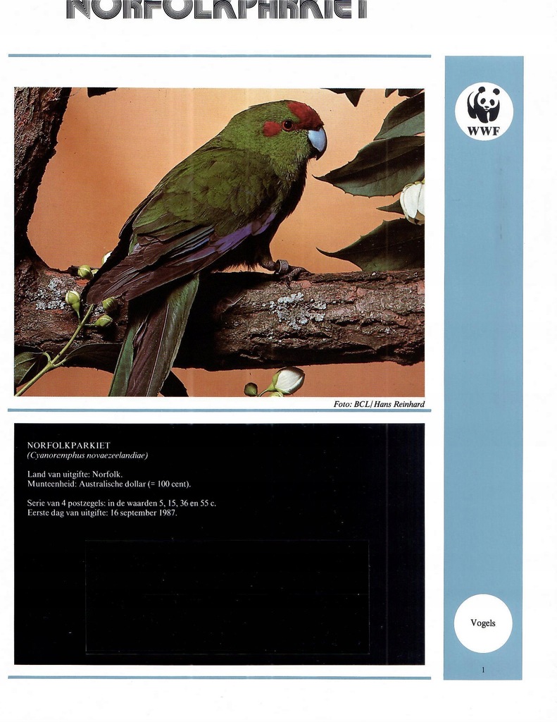 Posiada 76 kart ( zdj. opisy, kieszenie na walory ) Mauritius, 2003 r. papugi, Mołdawia, 2001 r, ptaki, Azerbejdżan, 1994 r. ptaki, Lesoto, 2004 r, ptaki, Polska, 2003 r. ptaki, Macedonia, 2001 r. ptaki, Gibraltar, 1996 r, ptaki, Norfolk, 1987 r. papugi, Man, 1989 r, ptaki, St. Vincent, 1989 r. papugi, Urugwaj, 1993 r. strusie, Niuafoou, 1998 r. papugi, Szwecja, 1994 r. ptaki , Kajmany, 1993 r. papugi, Nowa Zelandia, 1993 r. ptaki, Tokelau, 1995 r, ptaki