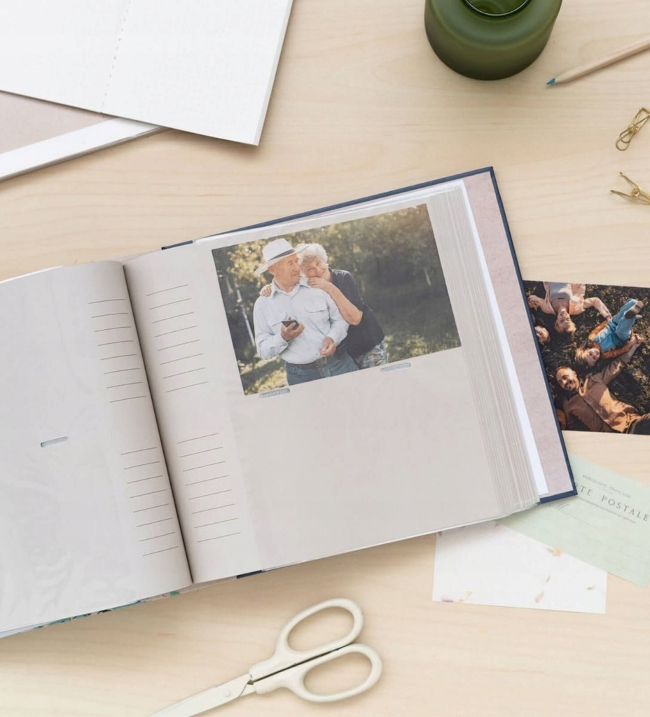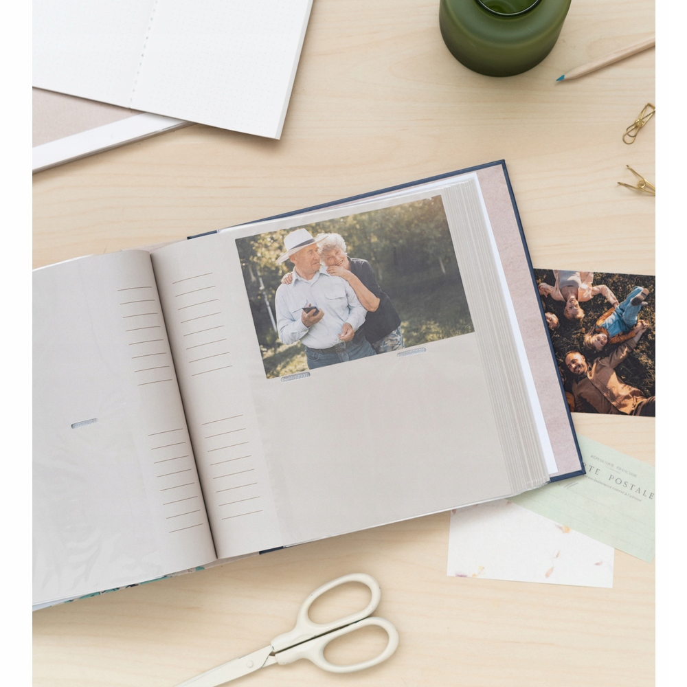 Album mieści 200 zdjęć formatu 10 x 15 cm (po 2 zdjęcia na stronę), jak i również posiada miejsca na notatki po bokach kieszonek.