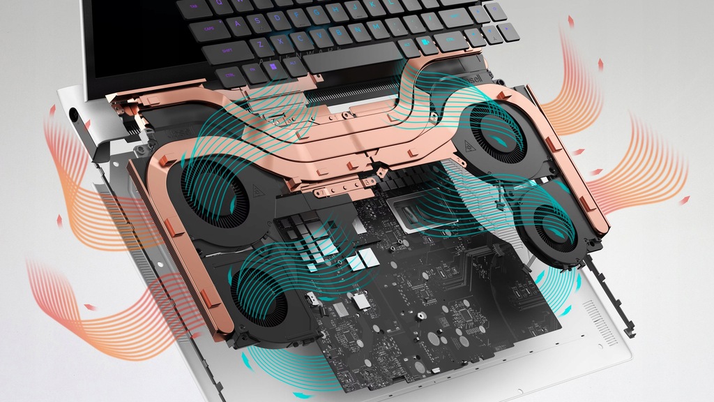 , ekskluzywnemu galowo-silikonowemu materiałowi interfejsu termicznego Alienware, który zapewnia o 25% lepszą odporność termiczną