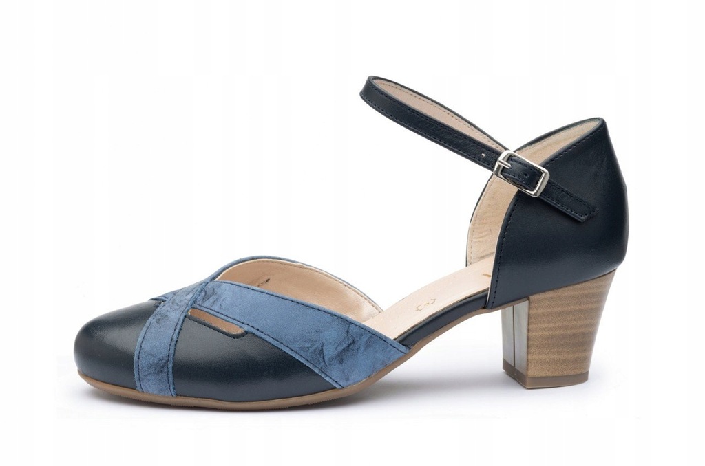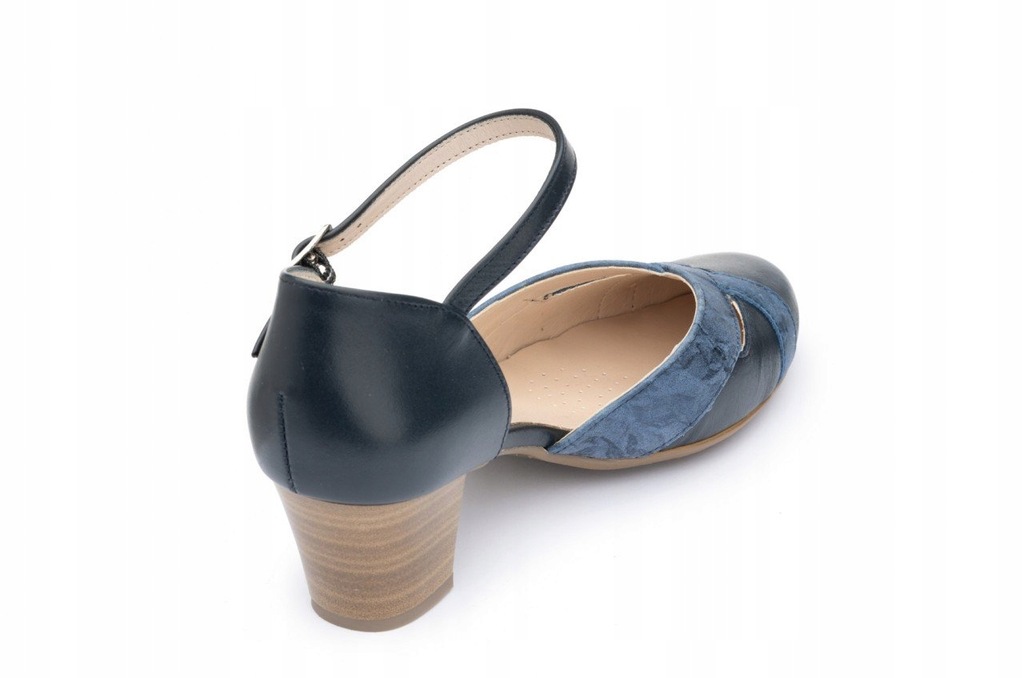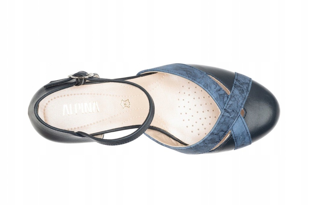 Alpina Anaja K 80N9-B wygodne damskie sandały wykonane z miękkiej skóry naturalnej w kolorze granatowym; miękkie, skórzane wkładki; antypoślizgowe podeszwy; dobrze wyprofilowane obcasy; tęgość K - polecane na stopy szerokie.
