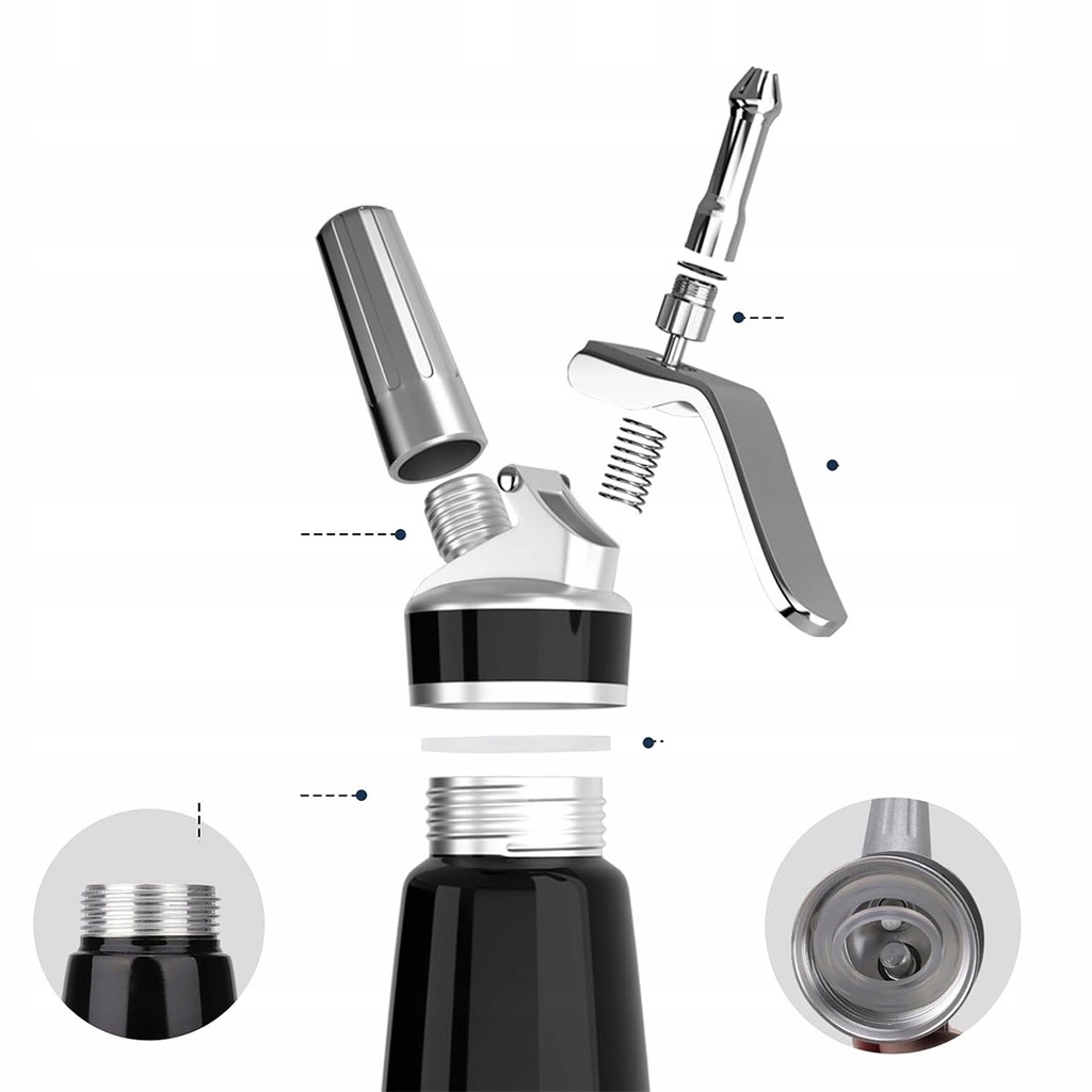 � Ciepłe i zimne: aluminiowa głowica i obudowa oraz końcówki ze stali nierdzewnej sprawiają, że syfon nadaje się zarówno do przygotowywania zimnych jak i gorących kremów.