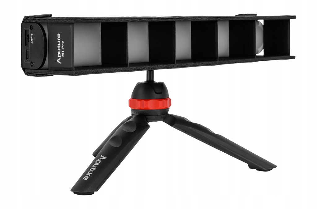 W zestawie z lampą Aputure MT Pro znajdziesz niewielki statyw, na którym możesz zainstalować urządzenie. Dwa żeńskie gwinty montażowe 1/4" ulokowane w różnych częściach obudowy pozwolą ustawić ją w pionie lub w poziomie. Lampę wyposażono też w mocne magnesy neodymowe. Dzięki nim, z łatwością połączysz tubę z metalowymi powierzchniami.