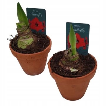 Amarylis Pełny Czerwony Red Lion Piękna Odmiana Sadzonki w Doniczce P12
