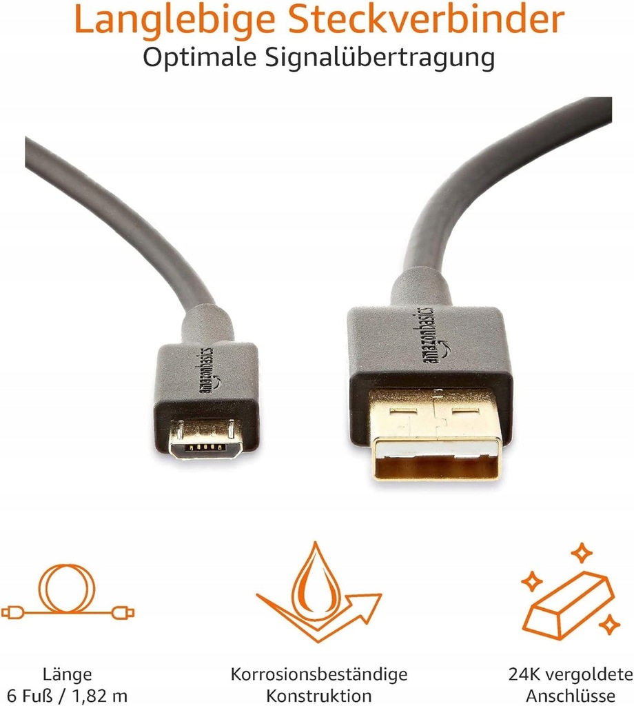 AmazonBasics kabel USB 1,8 m 2.0 USB A Micro-USB B Czarny