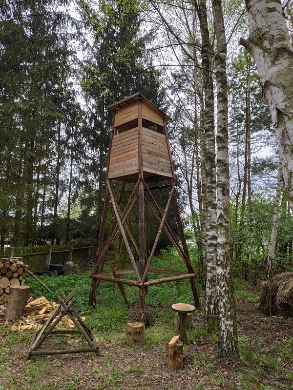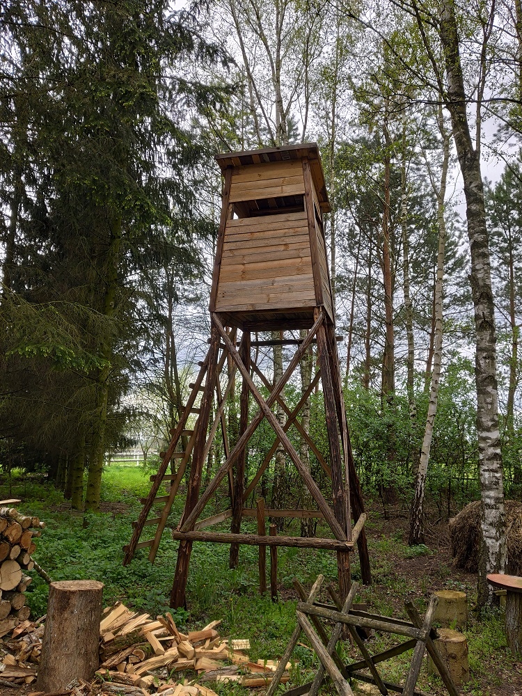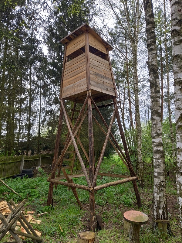 Witam,do sprzedania mam dwie ambony myśliwskie,zostały one zrobione w listopadzie zeszłego roku przeze mnie.Jeżeli chodzi parametry to wysokość całkowita to 6 metrów,rozstaw słupów przy ziemi 2,10m x 2,20m,podłoga 1,20m x 1,30m,,dach 1,30m x 1,35m,kabina wysokość 1,80m x 1,60m.