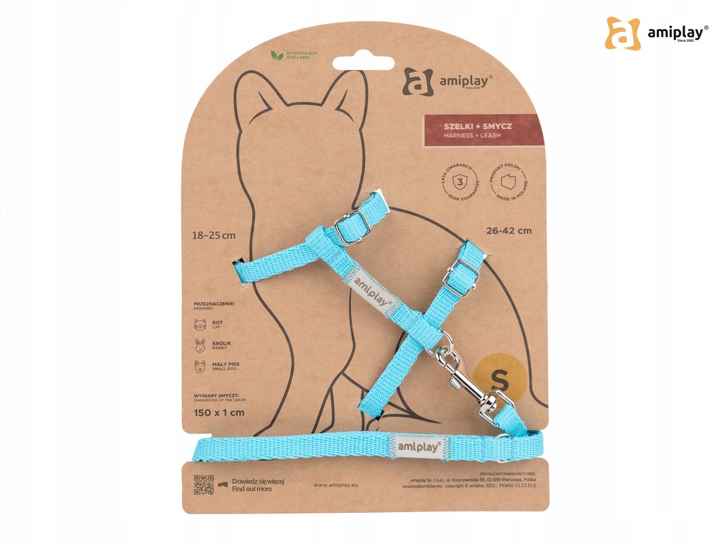 Komplet szelek ze smyczą z serii Twist od amiplay zapewni komfort i bezpieczeństwo Twojemu mruczkowi podczas spacerów, podróży lub wizyty w przychodni weterynaryjnej.