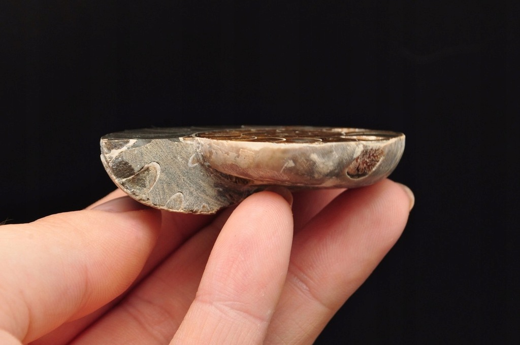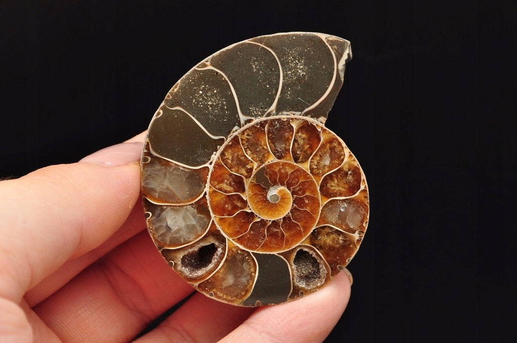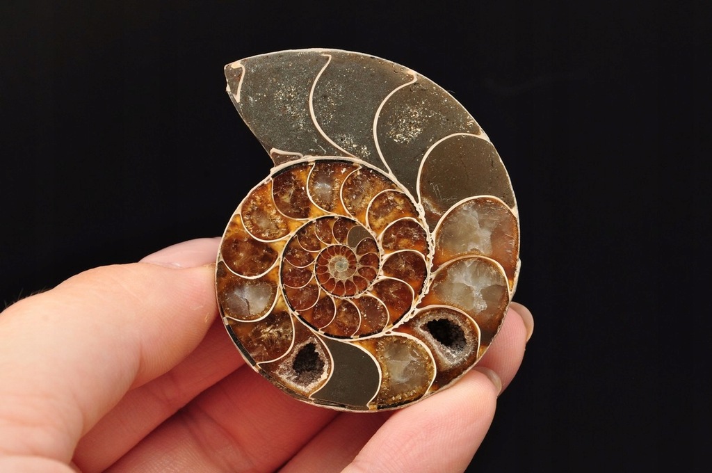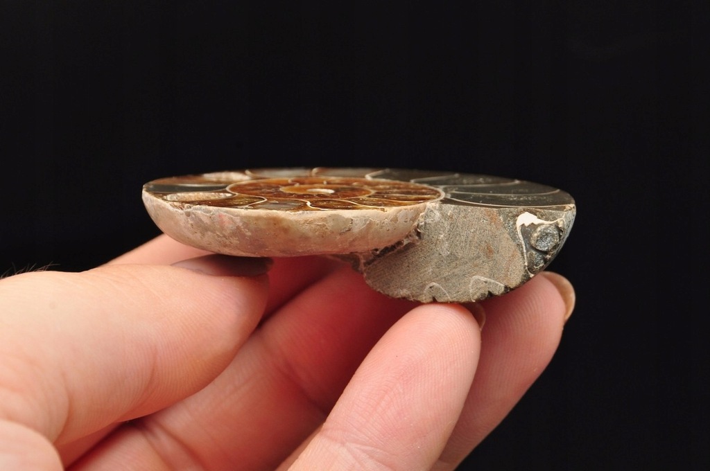 AMONIT KOMPLET, PIĘKNIE ZACHOWANY OKAZ. JEST TO SKAMIENIAŁOŚĆ POCHODZĄCA Z MADAGASKARU, DATOWANA NA OKRES KREDY DOLNEJ. UNIKATOWY OKAZ PRZECIĘTY I WYPOLEROWANY JEDNOSTRONNIE.