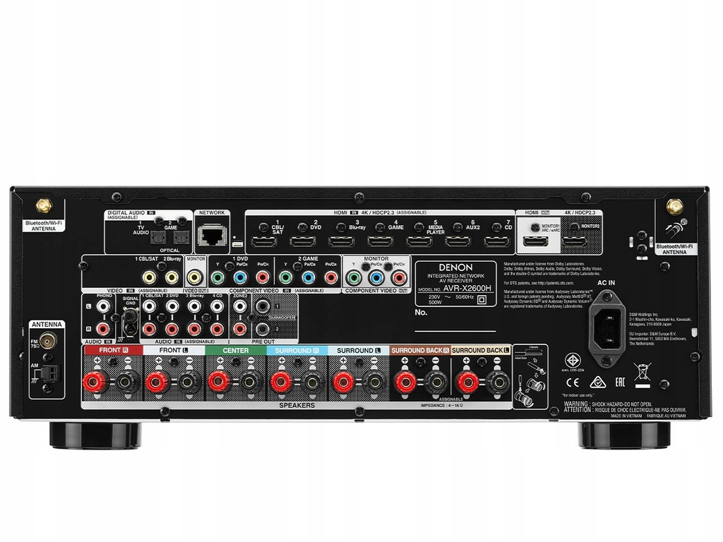Dzięki eARC, 4K Ultra HD i pełnej obsłudze HDCP 2.3 we wszystkich portach HDMI AVR-X2600H zapewnia bezproblemowe połączenie z każdym, nawet najnowocześniejszym telewizorem 4K i przyszłymi 8K. Jakość treści wideo jest bezkompromisowa dzięki najnowszym technologiom wideo 4K, takim jak Dolby Vision ™, HDR10 i HLG. AVR z serii X firmy Denon są również zgodne z HDCP 2.3, zapewniając zgodność z najnowszą zawartością chronioną przed kopiowaniem.