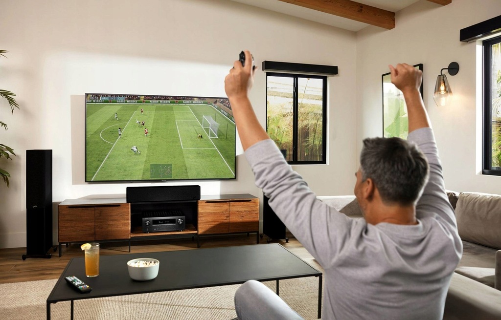 Wypełnij średniej wielkości pomieszczenie wyrafinowanym dźwiękiem w konfiguracji 7.2 lub 5.2.2 z Dolby Atmos i DTS:X.