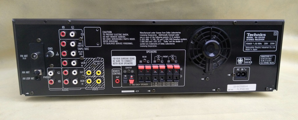 Moc stereo: 2 x 100 Watt / 8 Ohm, Moc surround: 5 x 50 Watt