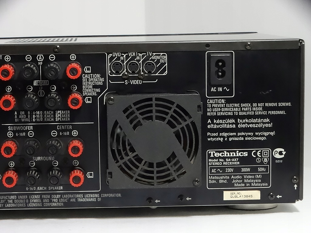 Amplituner ciągle używany tylko przez jednego użytkownika w idealnym stanie technicznym jak i wizualnym co widać na zamieszczonych zdjęciach z oryginalnym pilotem oraz instrukcja. Na innej aukcji mam do sprzedania dedykowany do amplitunera procesor dźwięku Technics SH-GE90. Całość zakupiona jako nowy sprzęt w sklepie i użytkowany tylko przez jednego melomana.