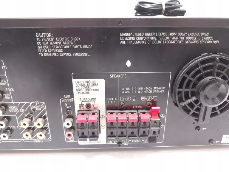 Tryb surround: 2 x 90 W (przód), 1 x 60 W (centrum), 2 x 60 W (tył)