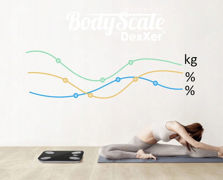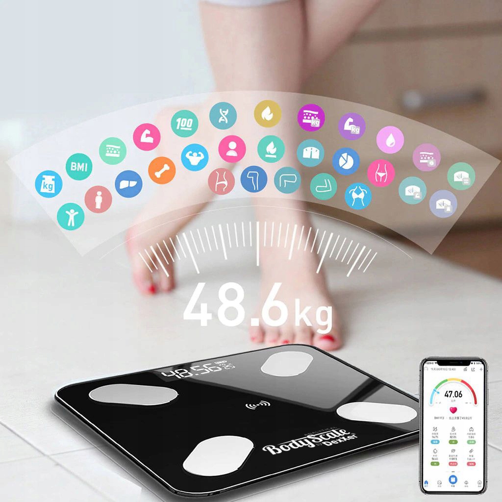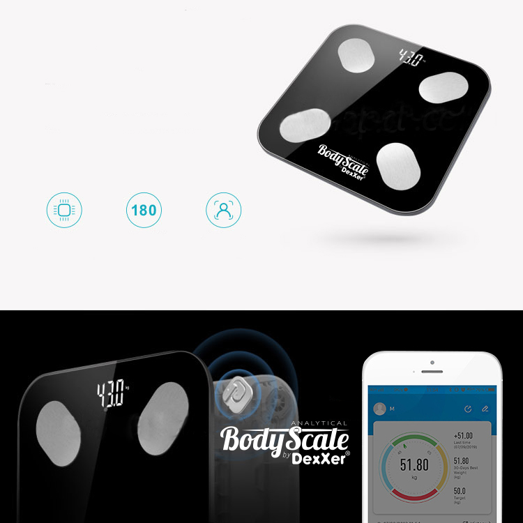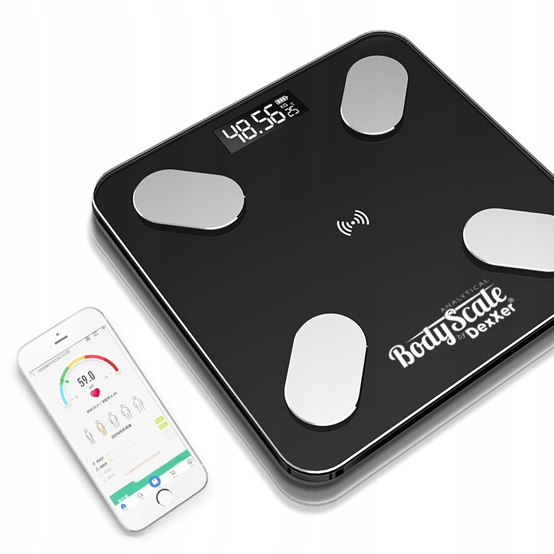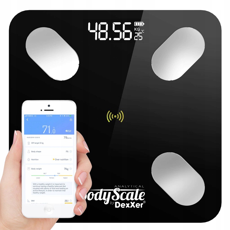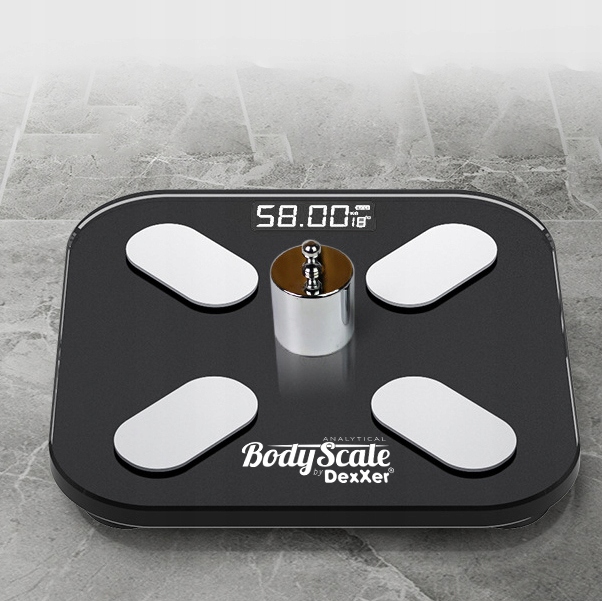 Waga Body Scale od DexXer analityczna to doskonały kompan w diecie i urządzenie, który pozwoli Ci na bieżąco monitorować postępy. Pełne zestawienie danych odnotowywanych w dedykowanej aplikacji dostępne jest z poziomu Twojego telefonu – dlatego też, możesz mieć je zawsze ze sobą