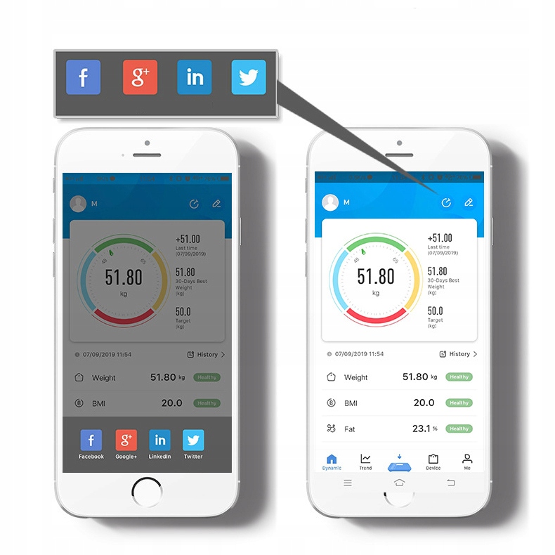 Do obsługi wagi przeznaczona jest bezpłatna aplikacja, dzięki której nie tylko zmierzysz i zarejestrujesz swoje wyniki - dzięki niej możesz również podzielić się nimi z przyjaciółmi! Wspólne świętowanie nawet najmniejszych sukcesów motywuje do dalszego dbania o własne zdrowie!