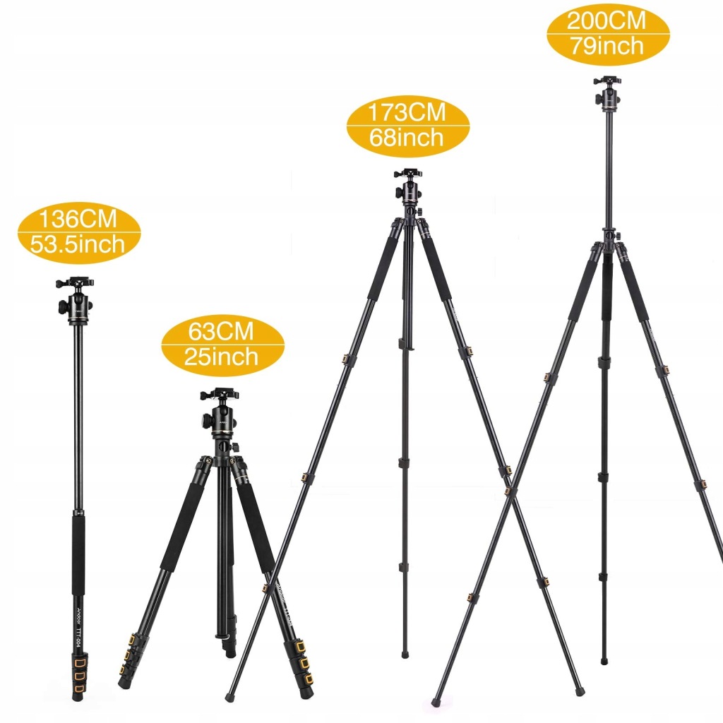 - nazwa przedmiotu: Andoer Statyw do aparatu 79 cali z kolumną środkową, statyw do aparatu 2 w 1 monopod z głowicą kulową 360°, lekki statyw ze stopu aluminium, maksymalne obciążenie 22 kg
