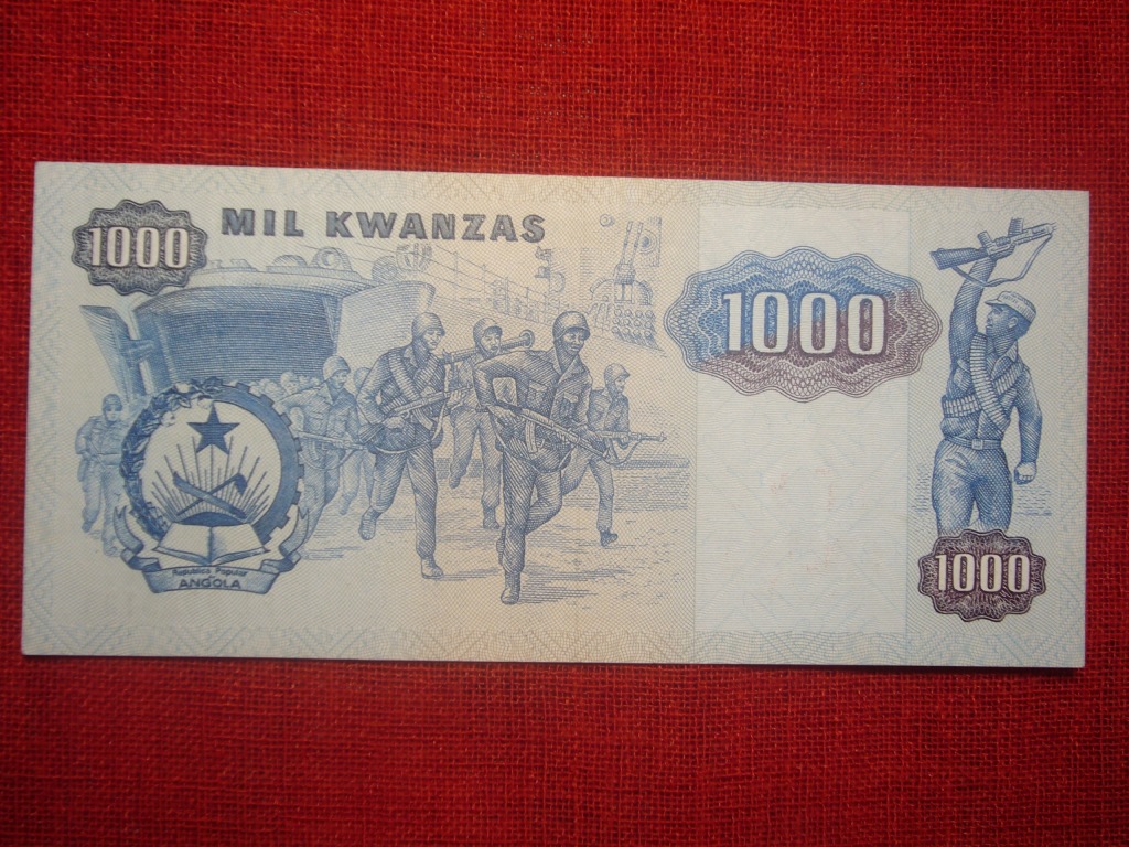 W 1991r Angola przeprowadziła próbną reformę walutową. Zanim wprowadzono do obiegu nowe banknoty, wyemitowano trzy banknoty "prowizoryczne" poprzez nadruk (w walucie NOVO KWANZA) na wcześniejszych banknotach z 1987r. Potem w ramach emisji "powrotnej" przywrócono nazwę waluty: KWANZA. Wystawiam dwa niższe nominały tej emisji.