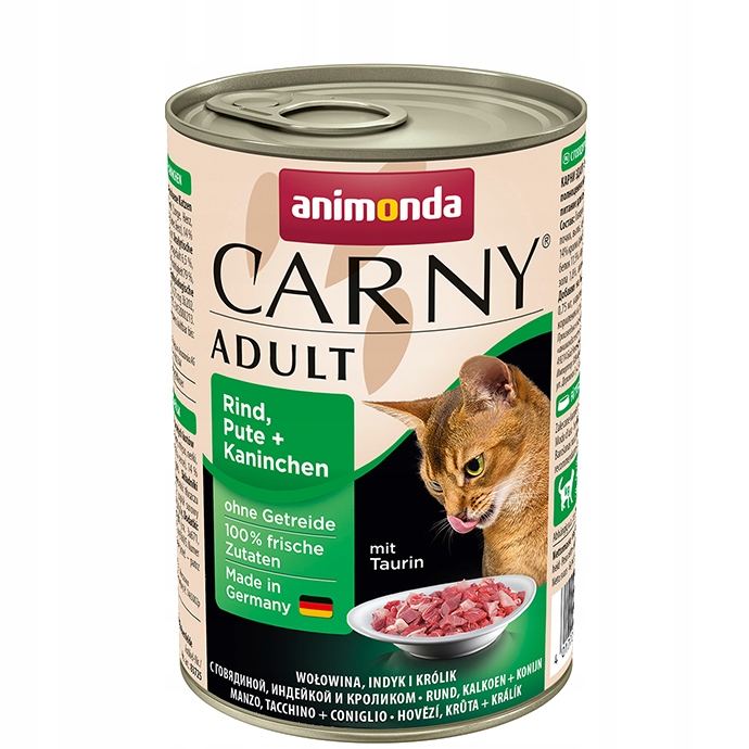 Animonda Carny to gwarancja najlepszego smaku. Nie zawiera wzmacniaczy smaku, soi, cukru, barwników i konserwantów.