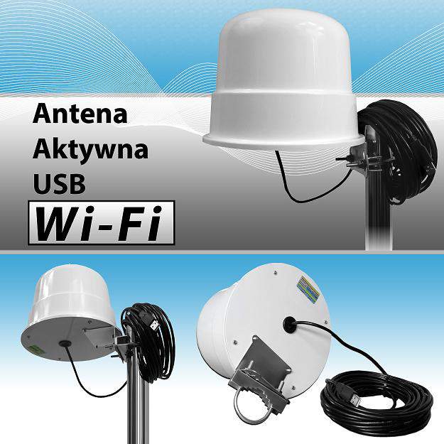 Przy tym rozwiązaniu unikamy jakichkolwiek strat sygnału na kablu antenowym. Z anteny wyprowadzony jest kabel USB o długości 5 metrów.