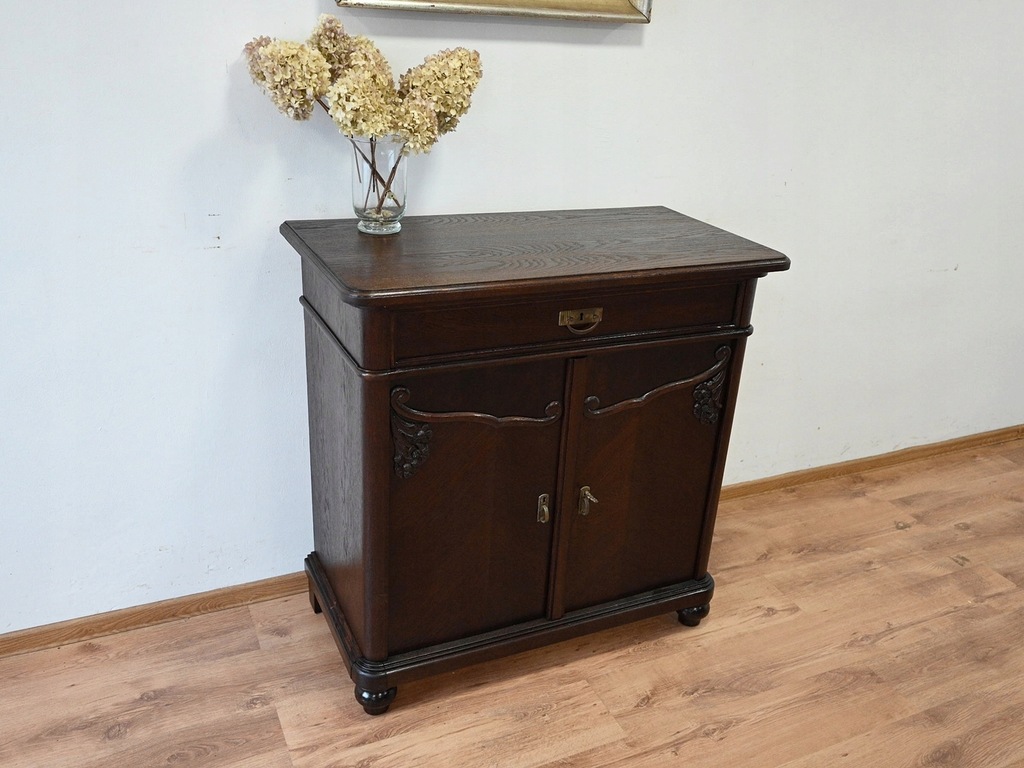 Drewniana komoda z szufladą.