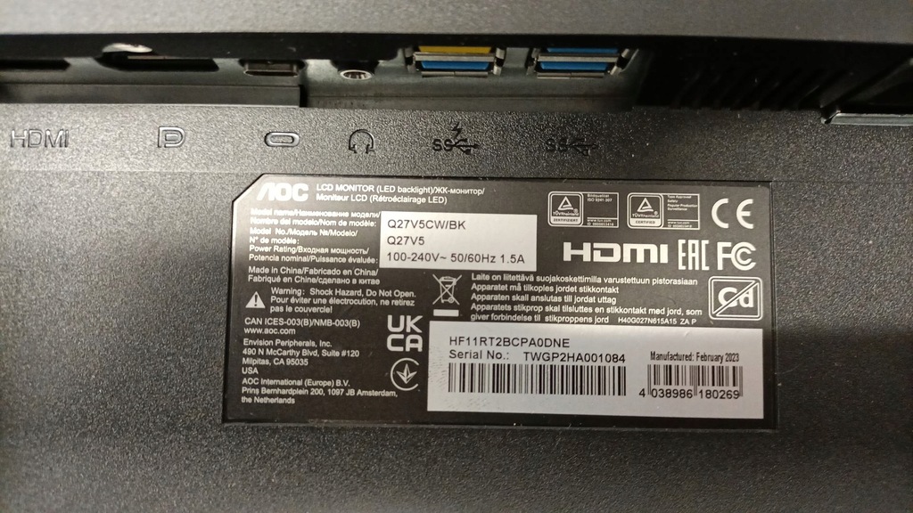 AOC Q27V5CW oferuje szerokie opcje łączności, takie jak USB-C z zasilaczem o mocy do 65 W, 4 porty USB, porty HDMI i DisplayPort. Logowanie przez kamerę internetową jest łatwe i bezpieczne dzięki Windows Hello